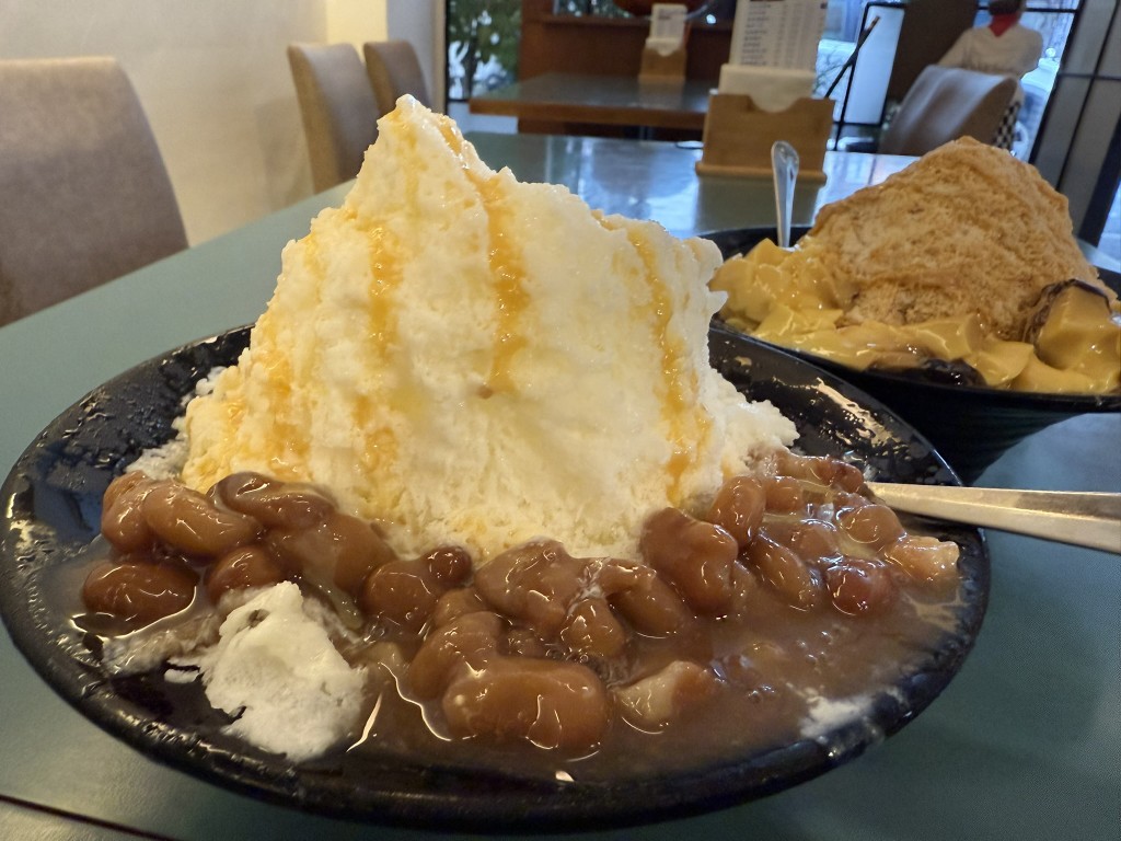 冰體綿密細緻、入口即化,加布丁或紅豆、花豆都很搭,還有巧克力、草莓、烏梅、百香果…..9種選擇,一大碗才60~70元,CP值爆高。