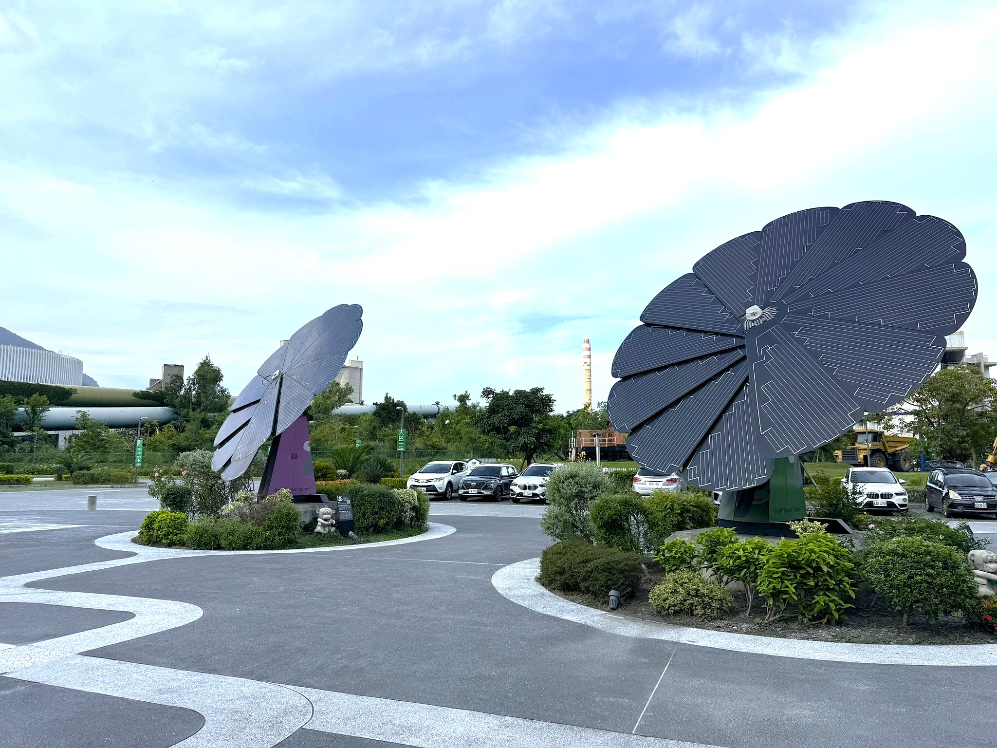 園區入口處那朵會隨著陽光開合的「和平花」裝置,就是這座園區與自然共生的最佳象徵。